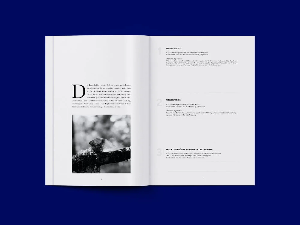 Die Ergebnisse dienen mir als Orientierung für die anschließende Gestaltungsarbeit. Durch das Markenjournal werden Sie selbst zu neuen Erkenntnissen kommen, die Sie über unsere Zusammenarbeit hinaus bereichern können und die Ihnen zu mehr Sicherheit bei künftigen Entscheidungen bezüglich Ihrer Außenkommunikation verhelfen.